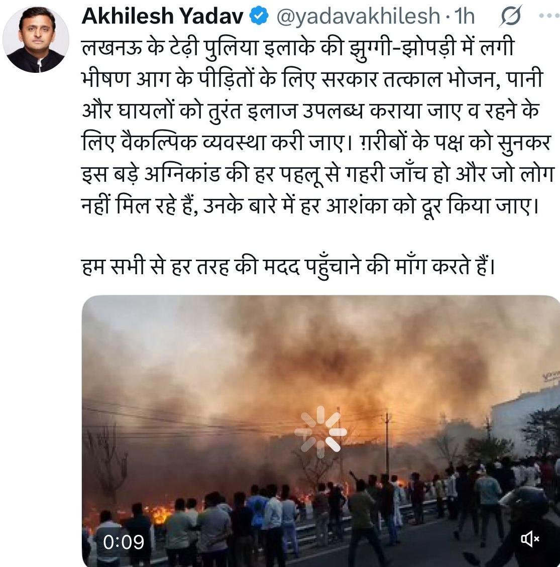 लखनऊ के विकास नगर में हुए अग्निकांड को लेकर सपा सुप्रीमो अखिलेश यादव का ट्वीट, जांच और राहत की मांग