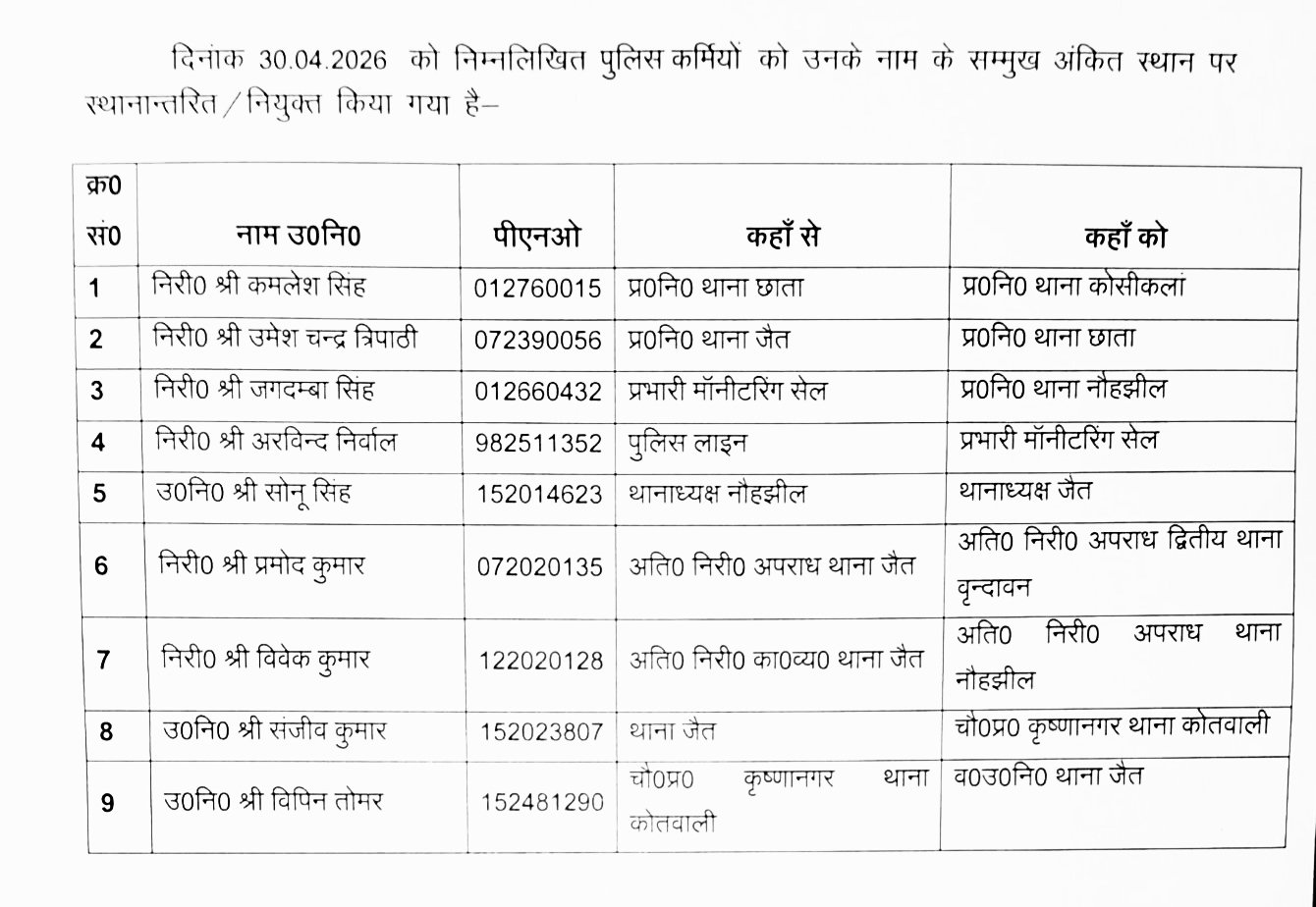 मथुरा। 29 अप्रैल 2026 मथुरा के गोवर्धन क्षेत्र में मगोर्रा थाना इलाके के भुडीयान गांव में देर रात एक विवाहिता की संदिग्ध हालात में मौत हो गई। सूचना मिलते ही पुलिस मौके पर पहुंची और शव को कब्जे में लेकर पोस्टमार्टम ... Read More