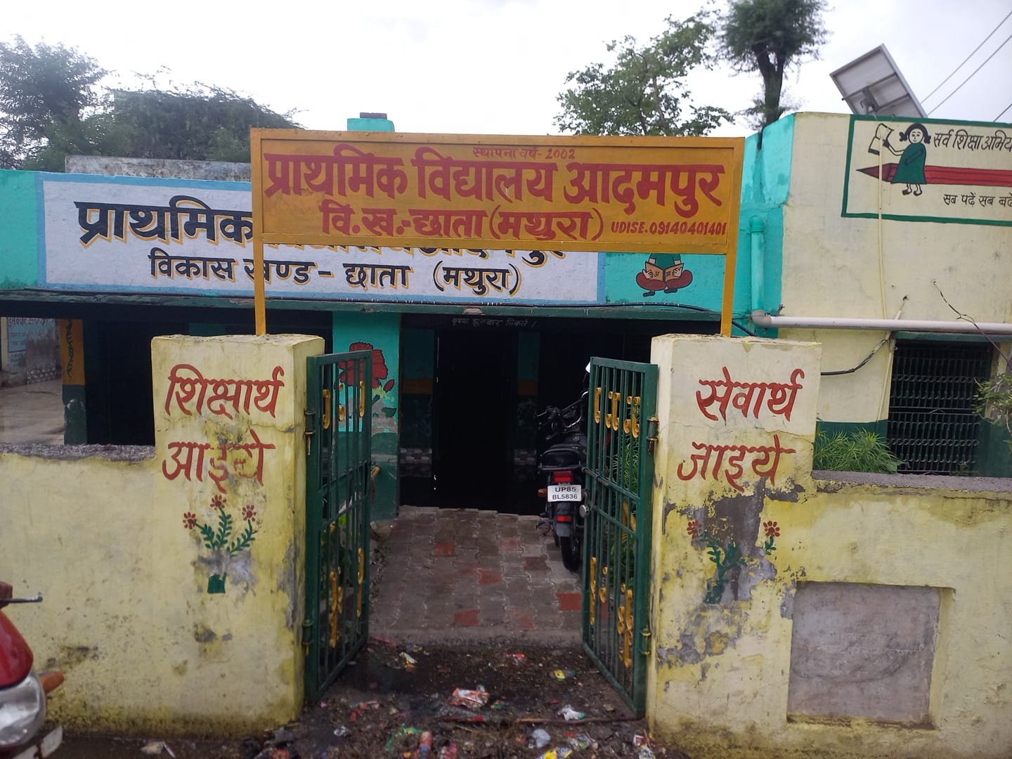 प्राथमिक विद्यालय आदमपुर में रिमझिम बारिश होने से हुआ जल भराव