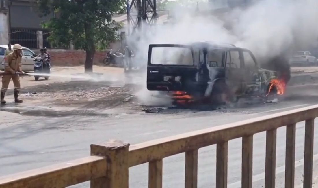 मथुरा- चलती स्कॉर्पियो बनी आग का गोला, तीन लोग कूदकर बचे